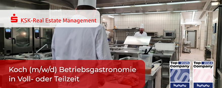Sie haben Lust auf familienfreundliche Arbeitszeiten, ein stabiles Umfeld und eine Küche, in der Sie Ihr Know-how einbringen können? Dann sind Sie bei der KSK-Real Estate Management GmbH genau richtig! Als 100%ige Tochter der Kreissparkasse Köln kümmern wir uns mit mehr als 200 Mitarbeitenden um deren komplettes Immobilienportfolio, das Gebäudemanagement sowie die Versorgung der Vorstände und aller Mitarbeitenden am Standort Köln/Neumarkt.