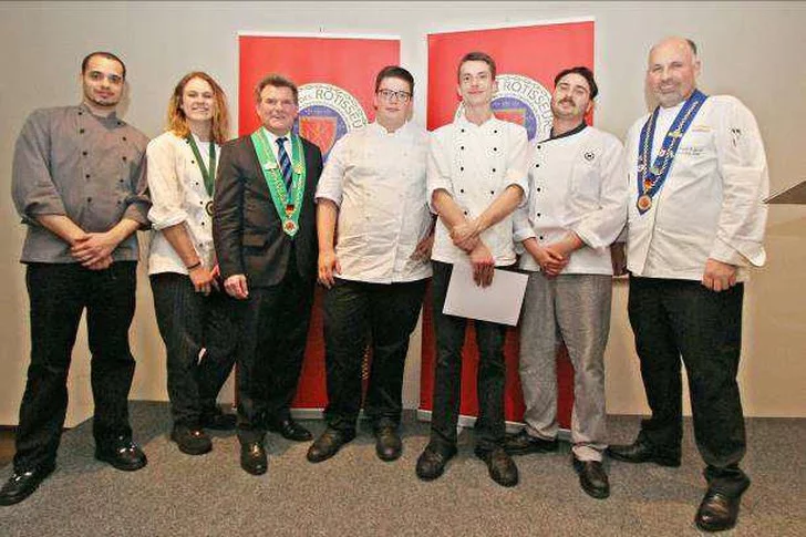 „Es waren oft nur wenige Punkte Unterschied – ein wahres Kopf-an-Kopf-Rennen“, kommentierte Bailli Michel Prokop. Er dankte in seiner Ansprache den engagierten jungen Teilnehmern, der Jury und Küchenaufsicht sowie dem Gastgeber des Abends, Chaîne-Mitglied Robert Mangold, Geschäftsführer des Gesellschaftshaus Palmengarten. Für die jungen Chefs gab es neben Urkunden und Medaillen „flüssige“ Sachpreise des Weinguts Georg Müller Stiftung in Eltville und des Weinhandels Fertsch in Bad Nauheim.