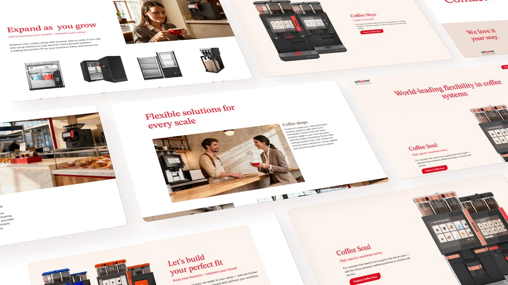 Herzstück des Relaunches ist ein klarer Nutzerfluss, der sich an den realen Fragen der verschiedenen Kundengruppen von Schaerer orientiert. Die neue Webseite stellt entsprechend die Vorteile für die Benutzer in den Vordergrund und zeigt auf, welche Kaffeelösung für den jeweiligen Einsatzbereich den größten Mehrwert bietet. Mit nur wenigen Klicks sollen Interessierte zu den passenden Maschinen, Servicekonzepten oder digitalen Angeboten gelangen.