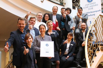 Die Mitarbeiter des VILA VITA Rosenpark dürfen sich freuen: Das Hotel hat den begehrten Certified Star Award gewonnen. (© VILA VITA)