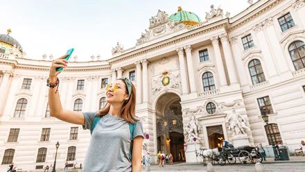 Asiatische Touristin vor der Wiener Hofburg