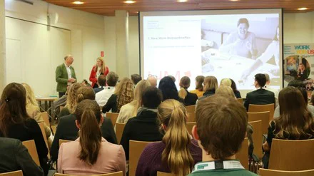 Auch die teilnehmenden Studenten waren begeistert von den Vorträgen und konnten sehen, wie die Umsetzung des Themas New Work in den Betrieben funktioniert. Zudem empfanden sie es als Bereicherung, wie Tobias Gläß stellvertretend für die Gruppe erklärte, „sich beim Workshop auszutauschen und zu sehen, welche Ideen da von Unternehmensseite, Verbänden und uns Studenten kommen.“